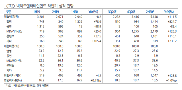 아울러 TXT의 미니3집이 연이은 10월 26일에 발매된다. 3대 아티스트 외 뉴이스트, 여자친구의 일본 앨범컴백과 엔 하이픈 데뷔까지 동사 4분기 모멘텀은 극대화될 수 밖에 없는 구조다.