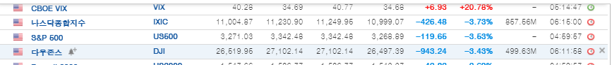대선 불확실성, 재정정책 합의 지연 실망감, 독일의 코로나 봉쇄조치 등으로 시장은 거센 차익실현 매도에 나섰습니다. 주식 시장의 변동성을 나타내는 VIX 지수는 40을 넘겼고, 나스닥, S&P, 다우존스 지수는 3% 이상의 급락을 보였습니다.