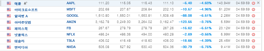 FAANG, MAGAT 등으로 대표되는 대형 성장주들의 급락도 눈에 띕니다. 최근 견고한 흐름을 보이던 애플, 마이크로소프트, 알파벳 등의 주가가 큰 폰으로 하락하면서 대선 전에 다시 한 번 시장의 불확실 성을 키우고 있습니다.